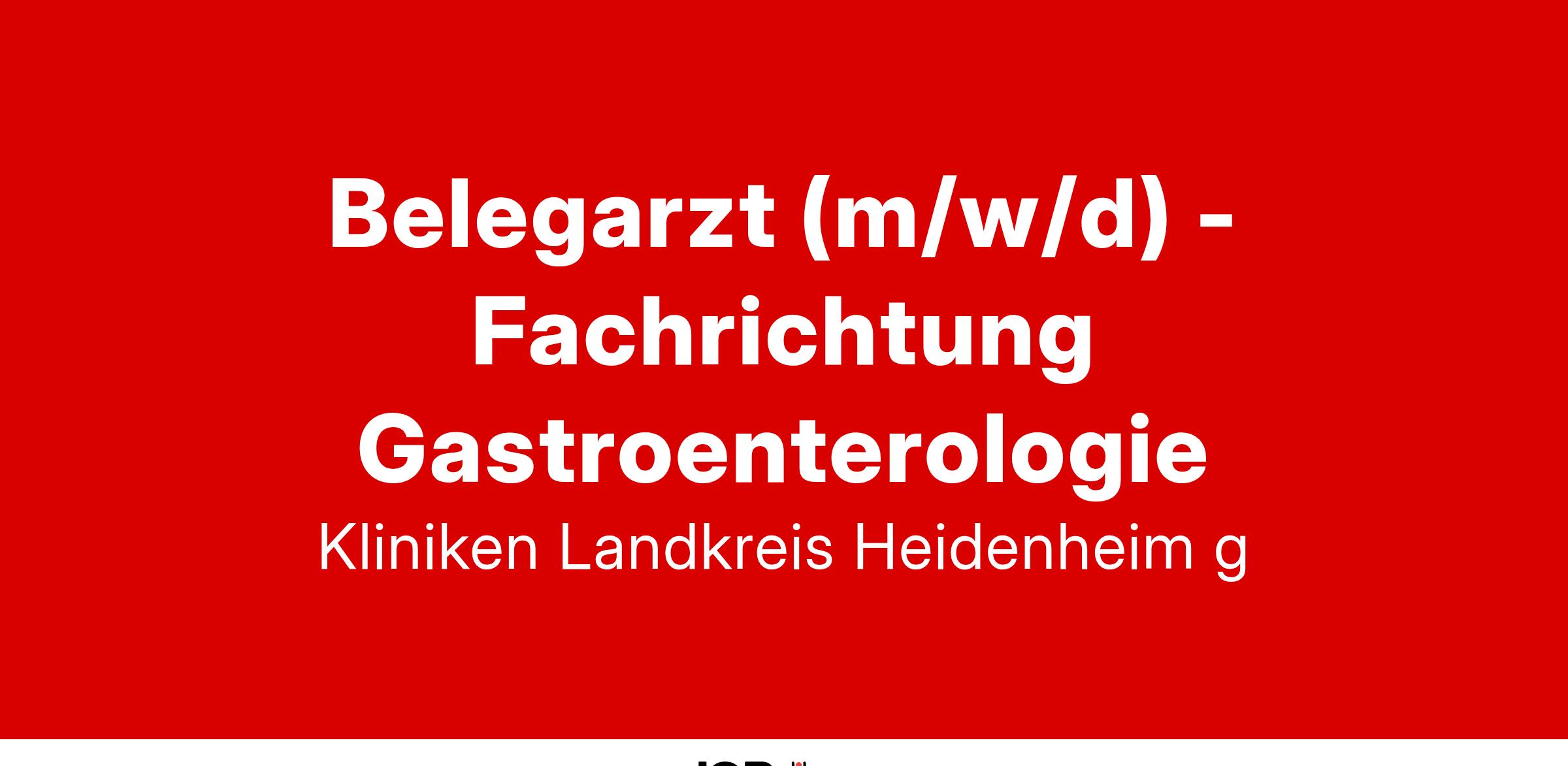 Die Kliniken Landkreis Heidenheim gGmbH suchen eine Belegarztpraxis für Gastroenterologie zur Ergänzung des Spektrums als Krankenhaus der Schwerpunktversorgung. Hierzu bieten wir einen Belegarztvertrag mit dem Krankenhausträger an.