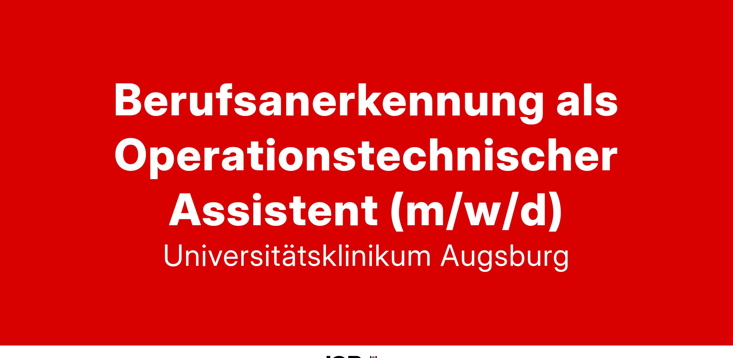 Du hast in deinem Heimatland bereits einen Berufsabschluss als Operationstechnischer Assistent (m/w/d) erworben? Du möchtest gerne in Deutschland leben und arbeiten und Dir in der kulturell vielfältigen Stadt Augsburg ein neues Leben aufbauen? Du kannst dir vorstellen, die Mitarbeitenden im OP-Funktionsdienst zu unterstützen?