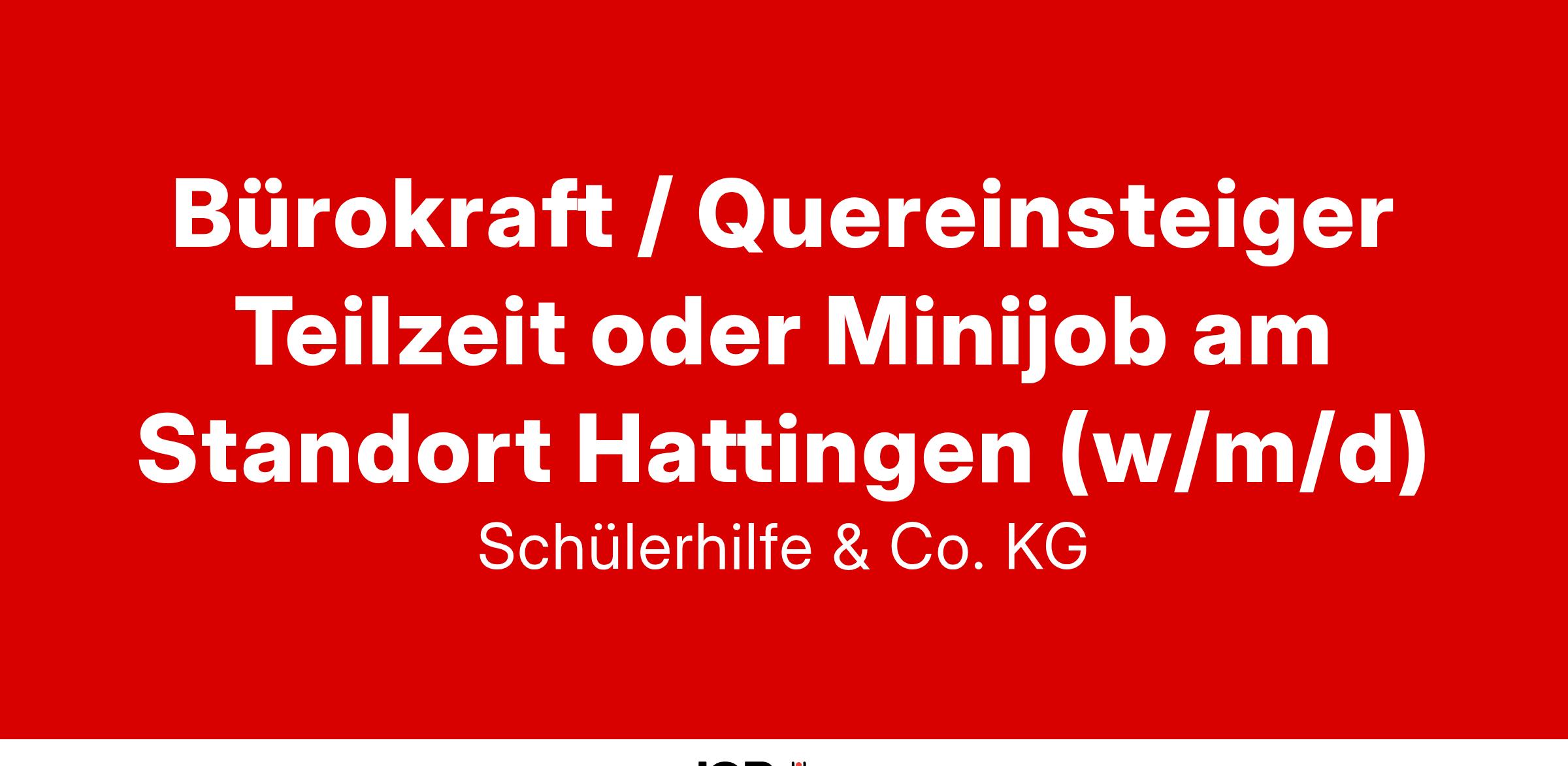 Für die Besetzung unseres Standortes in Hattingen suchen wir ab sofort Sie als Bürokraft (w/m/d) in Teilzeit oder auf Minijob-Basis (12 Std. oder 3 Std. / Woche, nachmittags, unbefristet).