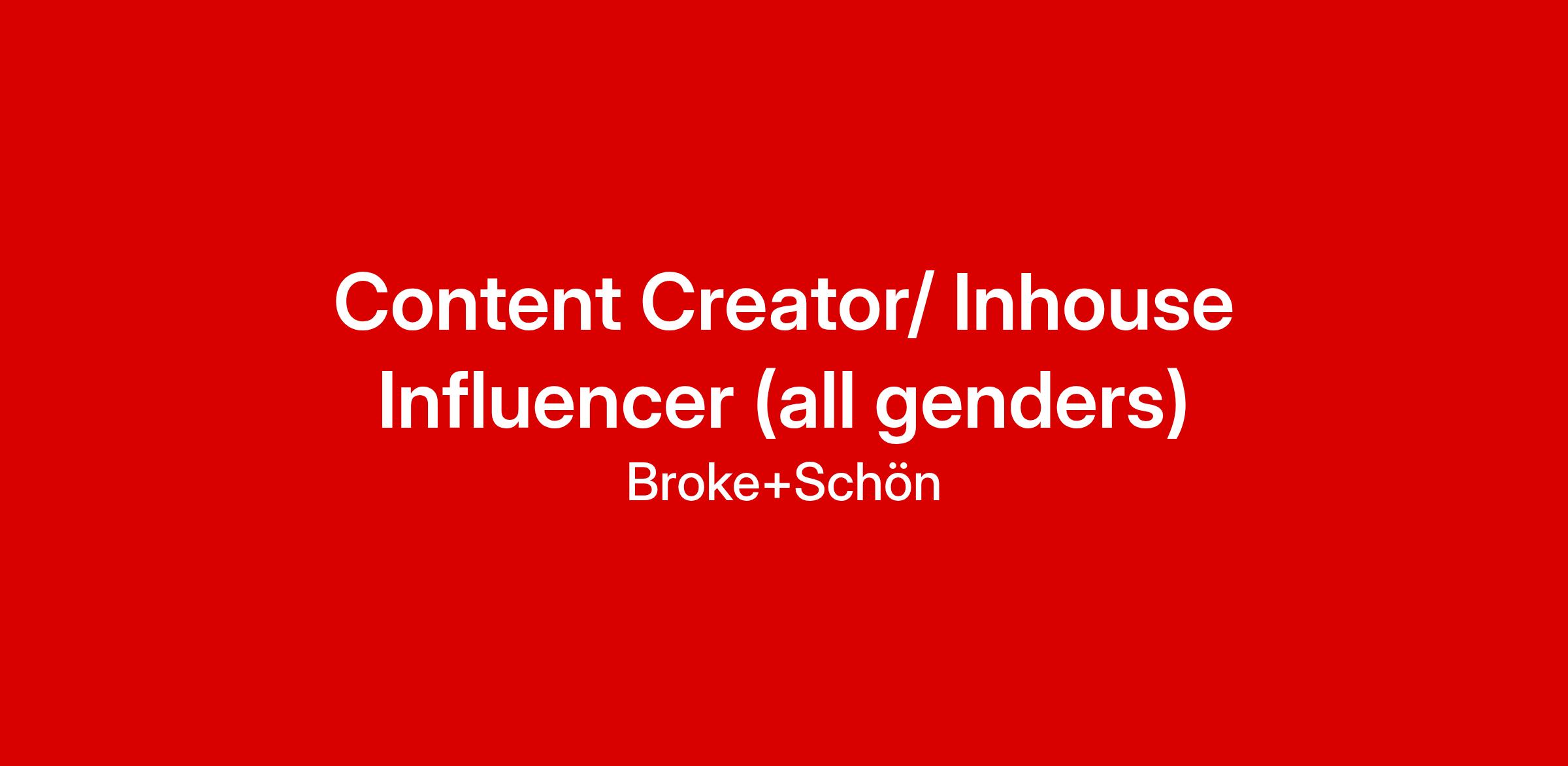 Als Content Creator (all genders) bist du Teil des Marketing Teams und gestaltest die inhaltliche und visuelle Kommunikation von BROKE+SCHÖN mit. Du fühlst dich vor der Kamera wohl und entwickelst kreative Inhalte für unsere Social Media Kanäle. Dabei agierst du als Inhouse-Influencer und repräsentierst unsere Marke authentisch nach außen – sei es durch Storytelling, Trend-Content oder persönliche Einblicke hinter die Kulissen.