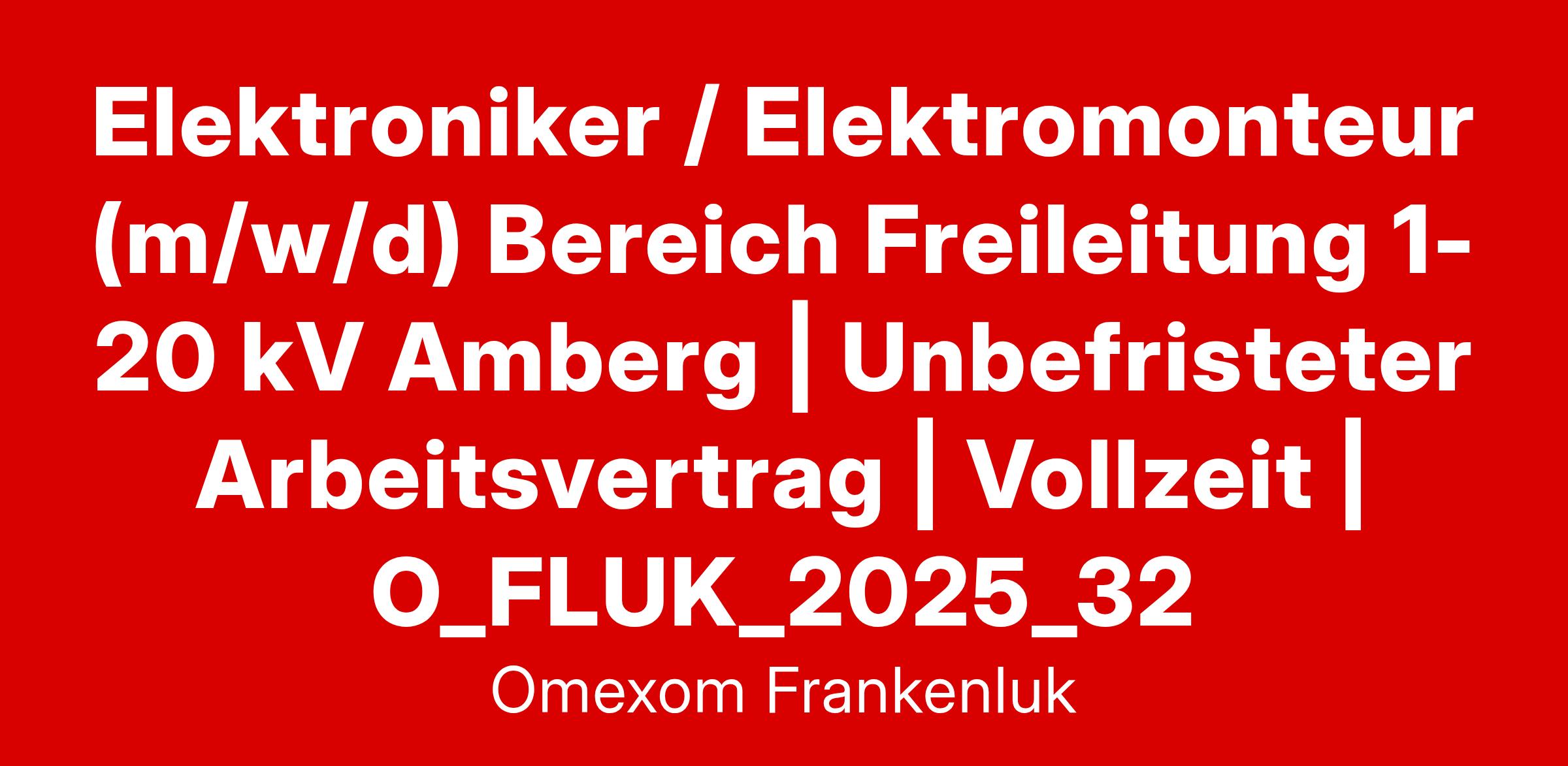 Elektroniker / Elektromonteur (m/w/d) Bereich Freileitung 1-20 kV Amberg | Unbefristeter Arbeitsvertrag | Vollzeit | O_FLUK_2025_32