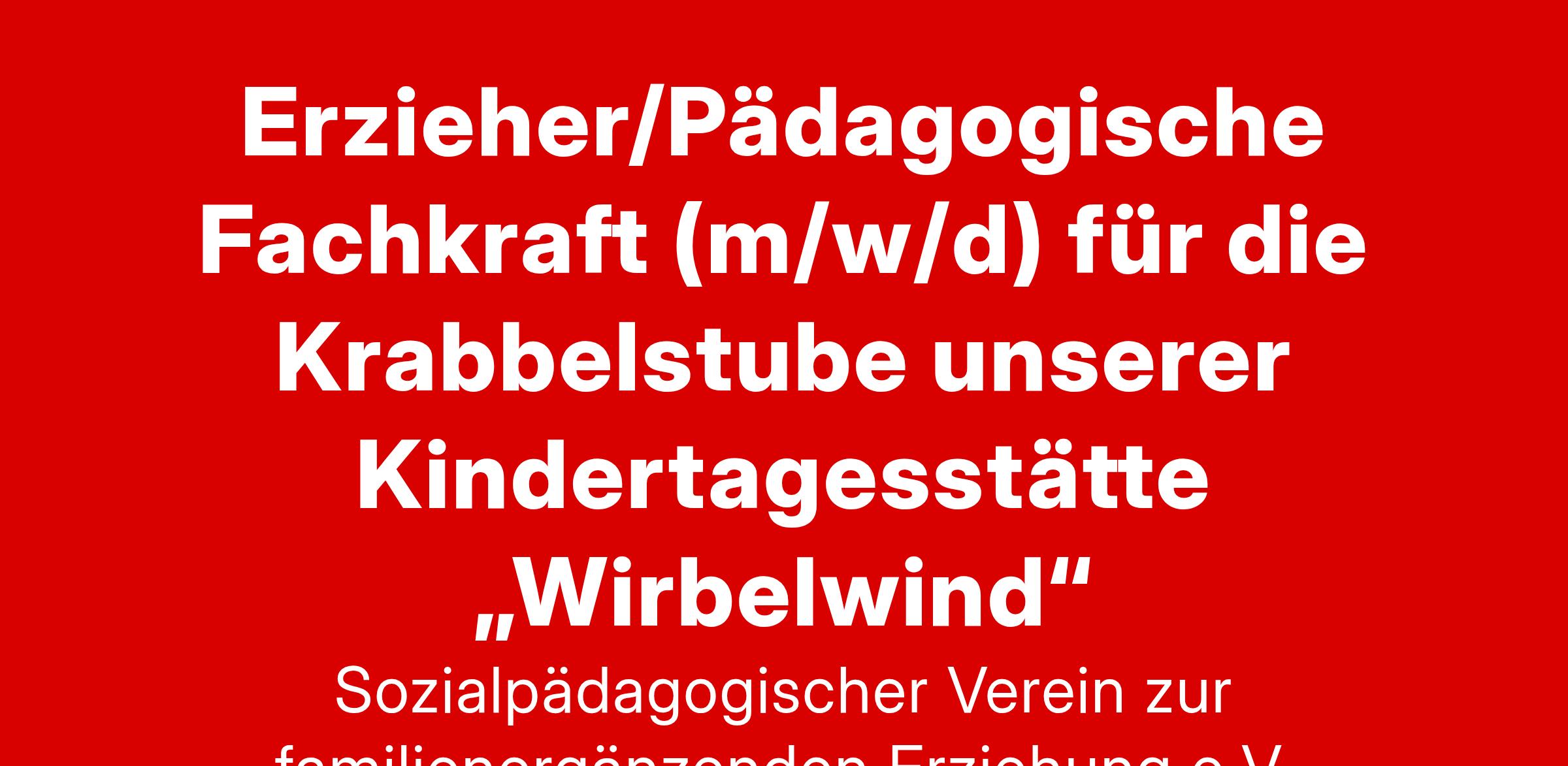 Erzieher/Pädagogische Fachkraft (m/w/d) für den Krabbelstubenbereich unserer Kindertagesstätte „Wirbelwind“