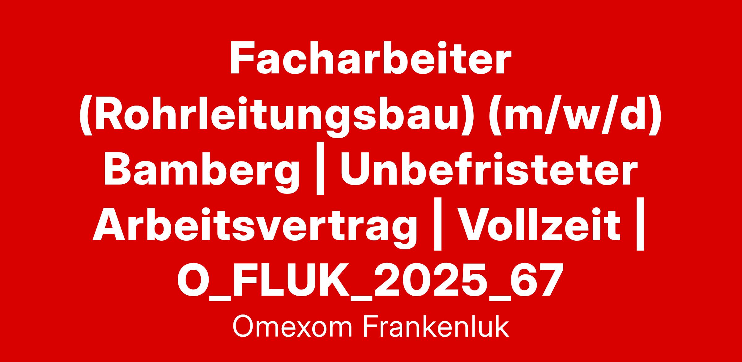 Facharbeiter (Rohrleitungsbau) (m/w/d) Bamberg | Unbefristeter Arbeitsvertrag | Vollzeit | O_FLUK_2025_67
