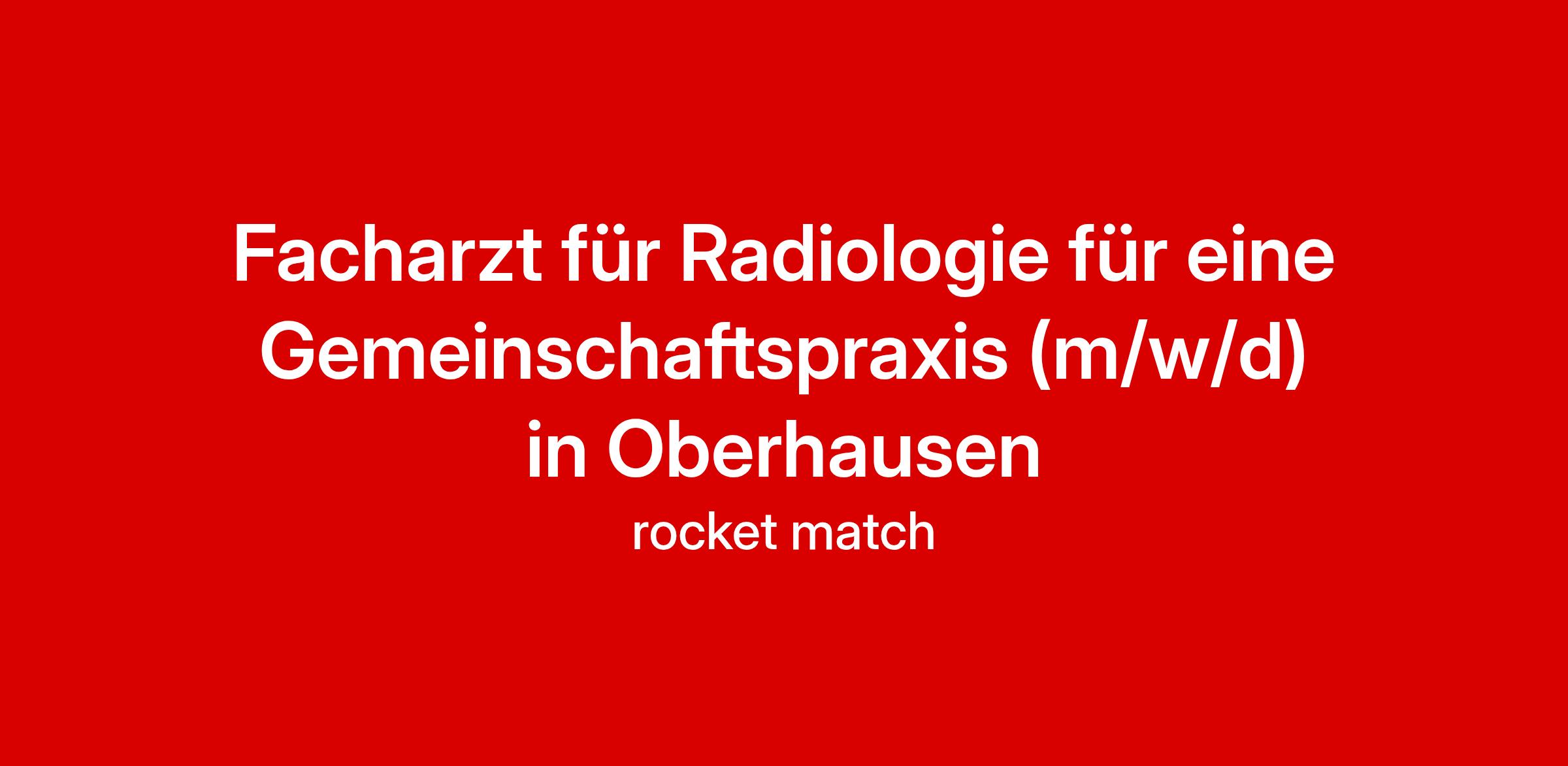 Für unseren renommierten Partner im Raum Oberhausen suchen wir Sie in Festanstellung als: Facharzt für Radiologie für eine Gemeinschaftspraxis (m/w/d)