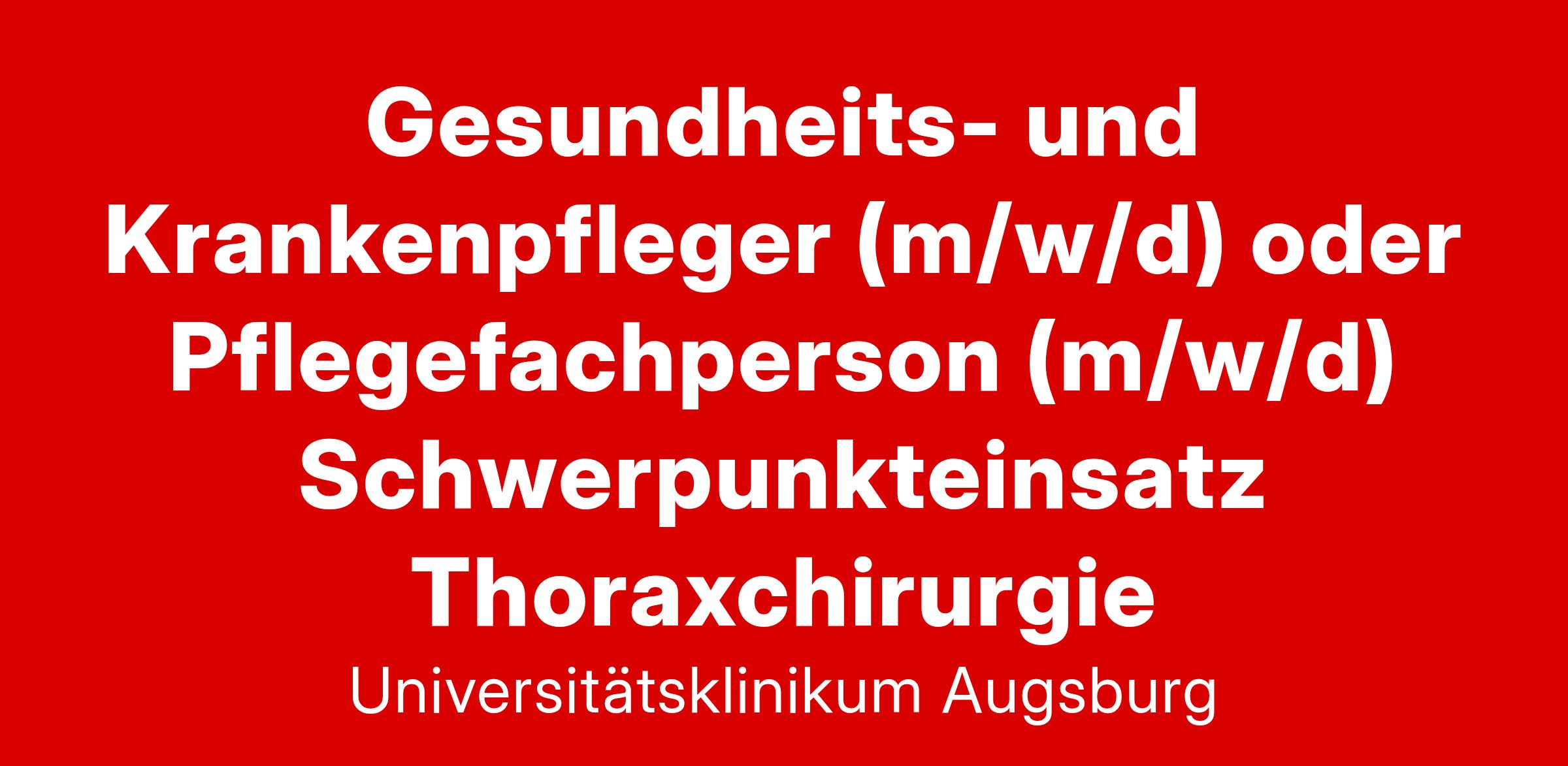 Die Stelle ist für die Besetzung mit schwerbehinderten Menschen geeignet. Bewerber (m/w/d) mit Schwerbehinderung werden bei im Wesentlichen gleicher Eignung, Befähigung und fachlicher Leistung bevorzugt. Das Universitätsklinikum Augsburg fördert die berufliche Gleichstellung von Frauen und Männern. Vor Aufnahme einer Tätigkeit am Universitätsklinikum Augsburg muss gemäß §§ 23, 23a IfSG ein ausreichender Impfschutz oder Immunität gegen Masern nachgewiesen werden.