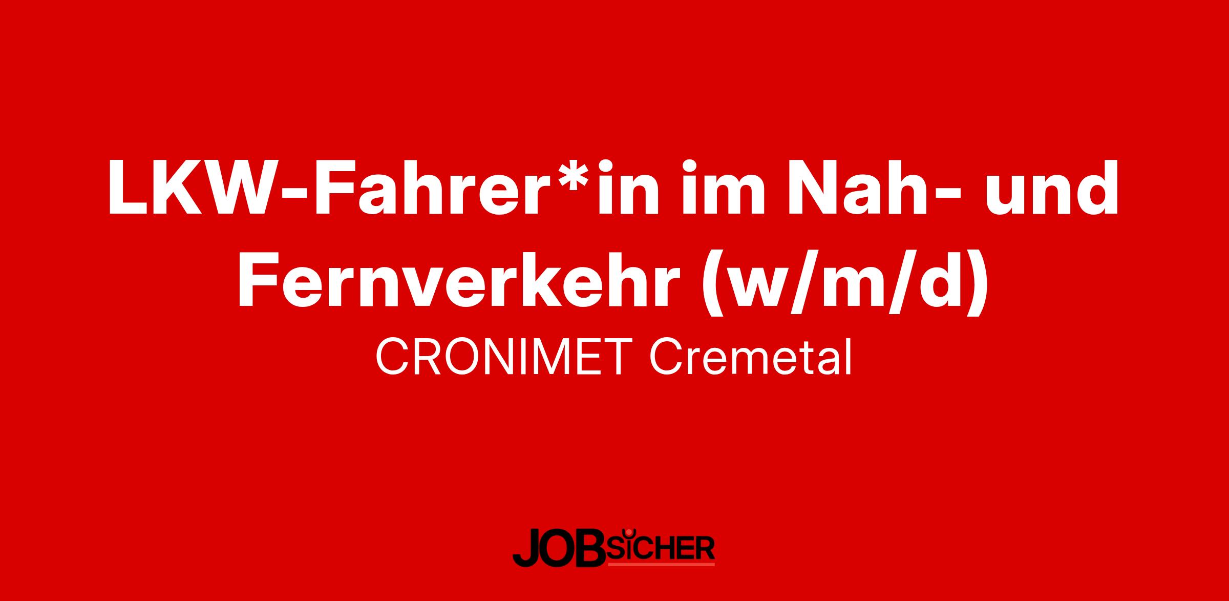 Unsere Tochtergesellschaft die CRONIMET Cremetal GmbH, wurde im Jahr 2003 gegründet und ist seit dem Jahr 2008 an zwei Standorten (Karlsruhe und Annweiler) mit bis zu 25 Mitarbeiter*innen in verschiedenen Bereichen des Schrott- und Metallhandels aktiv und wickelt ihre Geschäfte vom Einkauf über Lagerhaltung, Umarbeitung und Logistik bis hin zum Vertrieb autark ab. Die ausgeschriebene Position ist für den Standort in Karlsruhe vorgesehen.