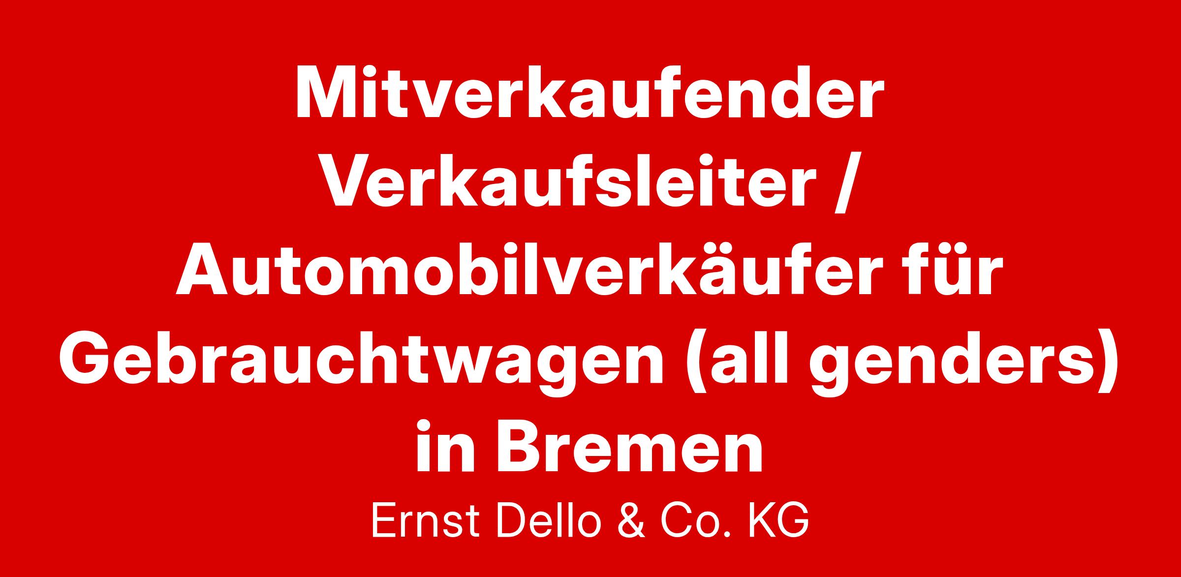 Beginne deinen Job in der DELLO GRUPPE an unserem Standort in Bremen als Mitverkaufender Verkaufsleiter / Automobilverkäufer für Gebrauchtwagen (all genders)