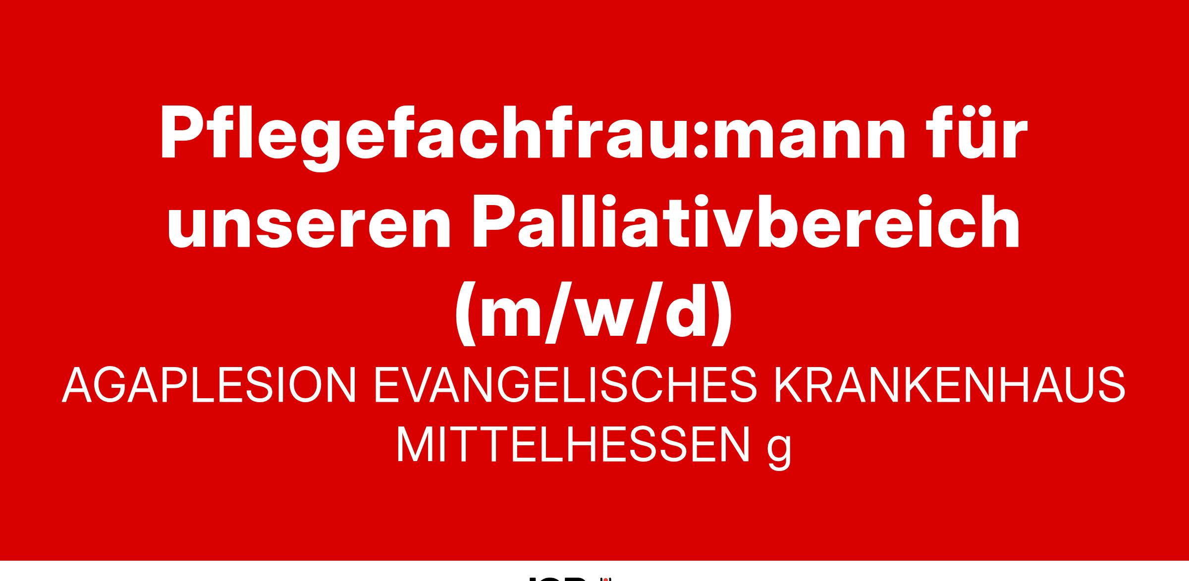 Zur Verstärkung unserer Pflegeteams in unserem Palliativbereich im AGAPLESION EVANGELISCHES KRANKENHAUS MITTELHESSEN gGmbH suchen wir Sie! In unserem aufgeschlossenen Team bieten wir Ihnen neben einem guten Betriebsklima ein spannendes und abwechslungsreiches Arbeitsfeld sowie Weiterbildungs- und Entwicklungsmöglichkeiten.
