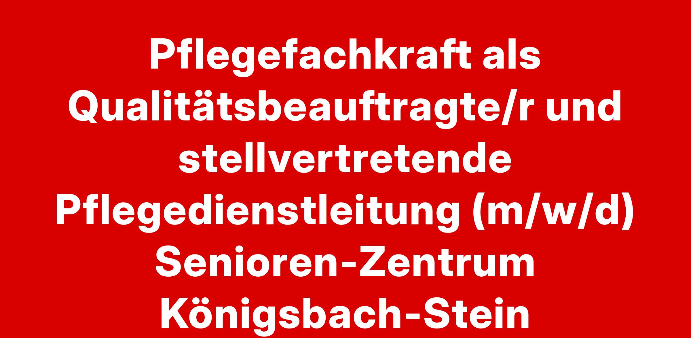 Pflegefachkraft als Qualitätsbeauftragte/r und stellvertretende Pflegedienstleitung (m/w/d) Senioren-Zentrum Königsbach-Stein