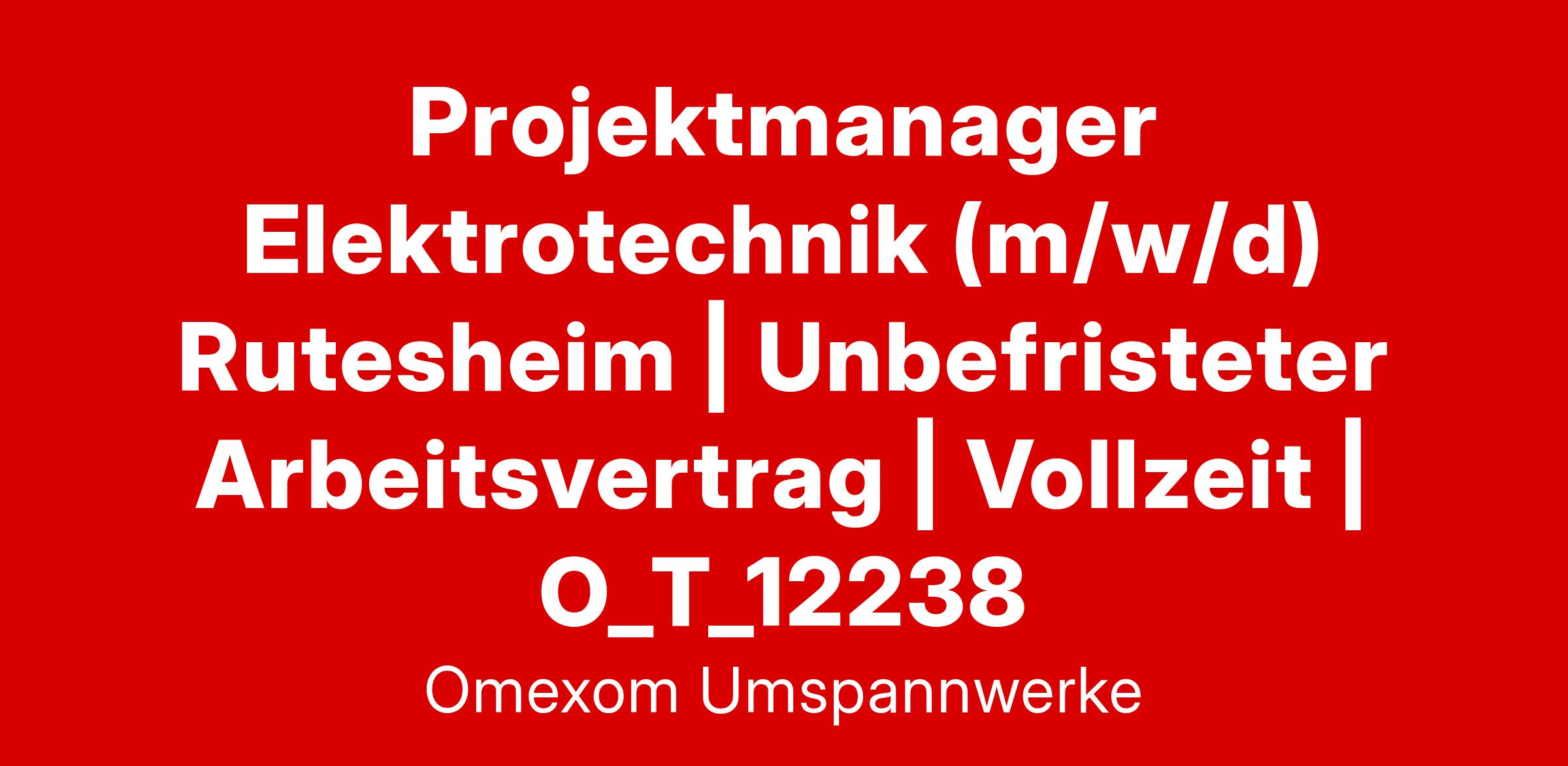 Projektmanager Elektrotechnik (m/w/d) Rutesheim | Unbefristeter Arbeitsvertrag | Vollzeit | O_T_12238