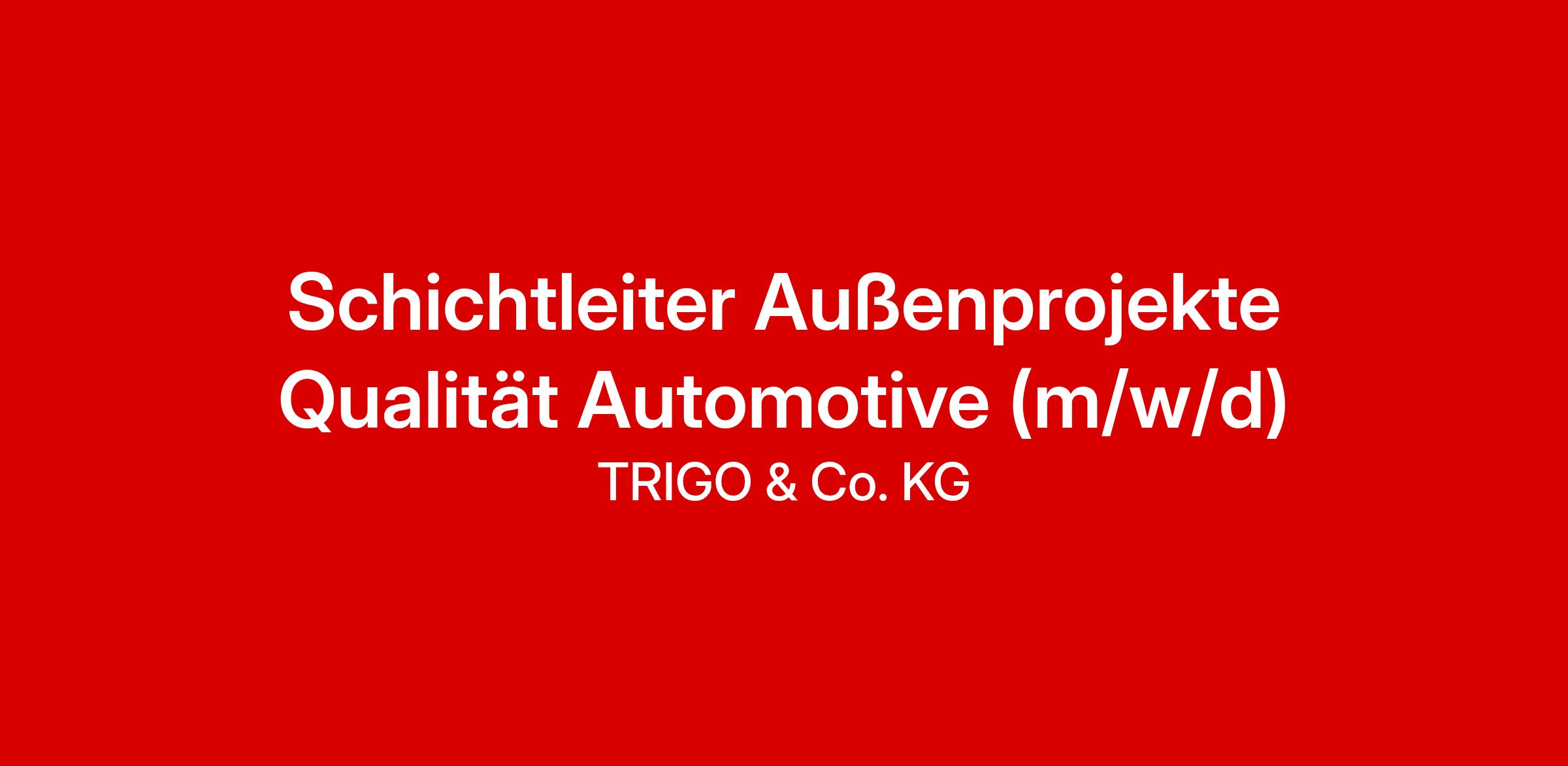 Qualität ist unsere Leidenschaft! Die TRIGO Group ist mit über 10.000 Mitarbeitenden weltweit führend im Qualitätsmanagement und unterstützt namhafte Unternehmen, insbesondere in der Automobilindustrie. Mit mehr als 550 Standorten in über 25 Ländern bieten wir innovative Lösungen - von Inspektionen bis hin zu Experten-Audits und Schulungen. Starten Sie jetzt Ihre Karriere bei TRIGO GmbH & Co. KG als Teil der TRIGO Group und gestalten Sie mit uns die Zukunft der Qualitätssicherung!